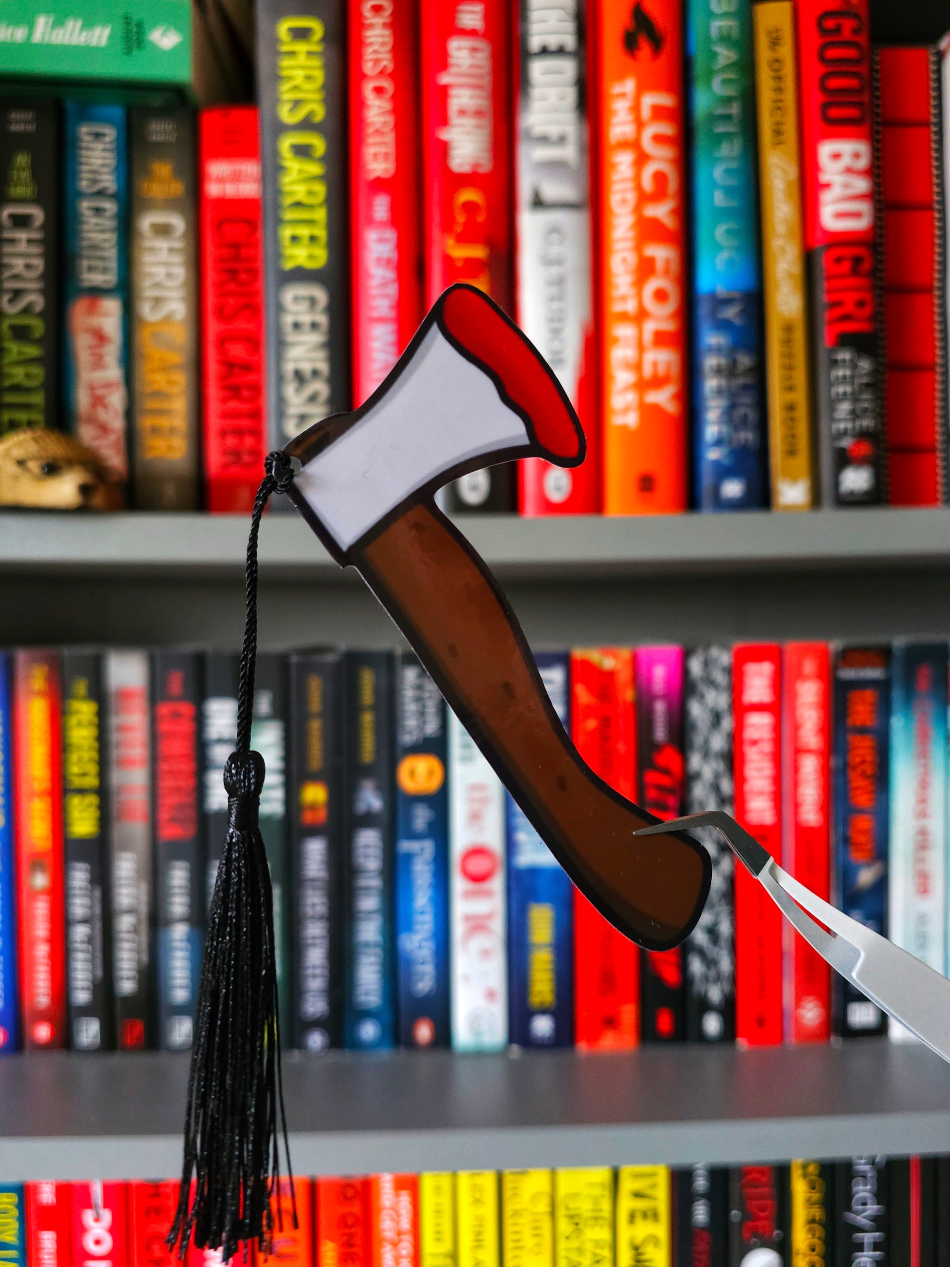 Introducing our brand new Bloody Axe Mini Holographic Tassel Bookmark, available with a black or red tassel and your choice of holographic sparkle or glossy finish. Perfect for crime and thriller readers, this smaller size is both adorable and functional. Printed with high quality inks and laminated for a sleek look.