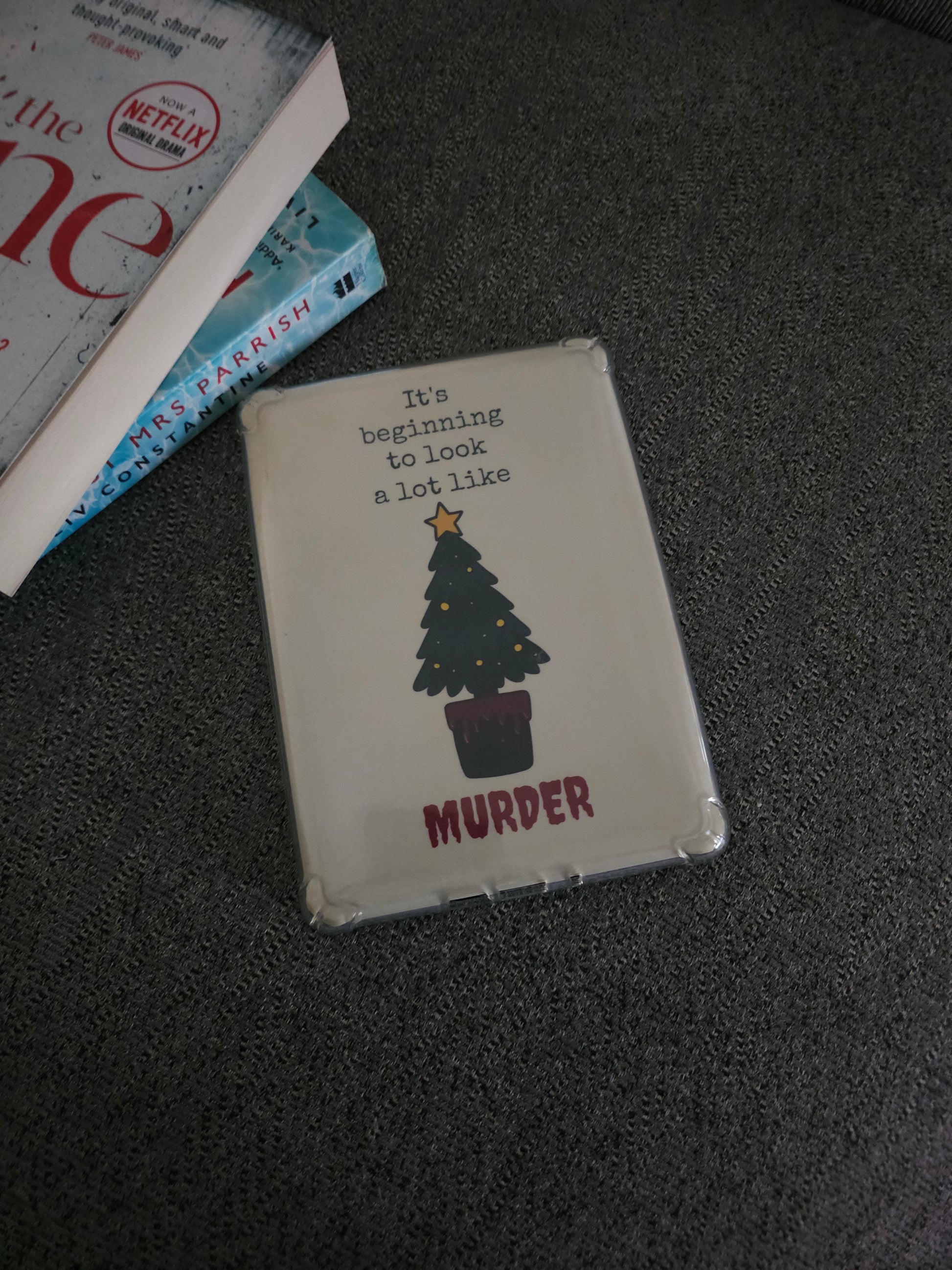 Add some festive menace to your Kindle with this It’s Beginning to Look a Lot Like Murder insert. Perfect for thriller lovers who like their Christmas with a twist. Featuring a creepy Christmas tree in a blood-dripped pot and a vintage-style typewriter font, it brings dark holiday vibes to your reading setup.